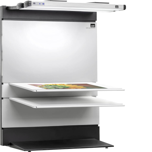 完善的照明技術(shù)和功能設(shè)計(jì)。沒有營業(yè)時(shí)間表,也沒有昂貴的替換燈。現(xiàn)在,您可以為我們的色彩搭配多年了。LED的持續(xù)高光質(zhì)量遠(yuǎn)遠(yuǎn)超過了ISO 3664:2009的Z低要求。多種彩色LED的混合產(chǎn)生的光譜比常規(guī)熒光燈更加和諧和完整。可調(diào)光校對(duì)站配有實(shí)用的可拉式鍵盤和顯示器導(dǎo)軌,可用于軟校對(duì)應(yīng)用。