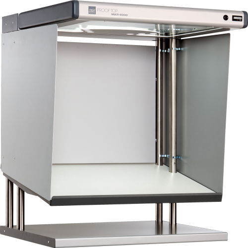 proofTop Multi的設(shè)計(jì)靈活使用,非常適合任何印前工作環(huán)境。它可以在現(xiàn)有桌子和櫥柜上使用,也可以安裝在墻上。當(dāng)與側(cè)壁和實(shí)用的基礎(chǔ)框架(手推車)結(jié)合使用時(shí),proofTop Multi可以變成一個(gè)完整的校對(duì)站。使用proofTop Multi作為獨(dú)立式,移動(dòng)式或臺(tái)式機(jī)版本,可進(jìn)行小于50 x 70厘米的小尺寸視覺顏色匹配。