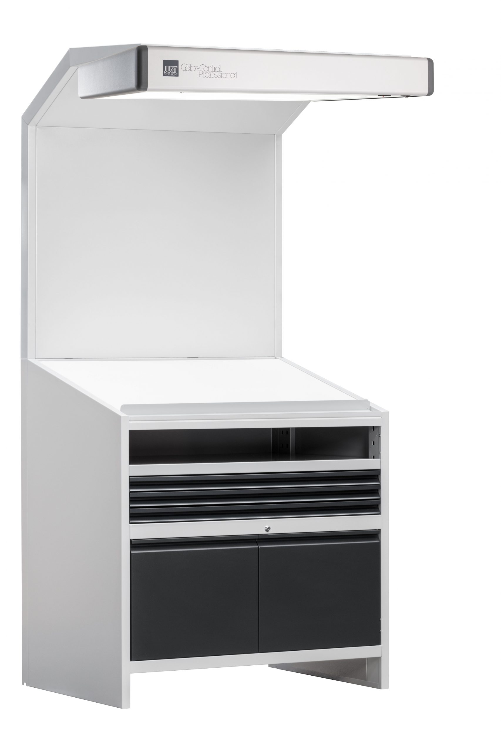 經(jīng)典的配色組合和實用的櫥柜為書桌和后壁提供了符合標(biāo)準(zhǔn)的照明。彩色校樣燈的非對稱照明設(shè)計可確保低眩光,低反射照明,而不會干擾陰影。從三個實用的柜子中進(jìn)行選擇,以0B格式存儲地塊和樣張。